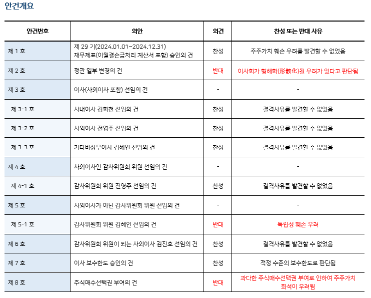 * 본 의안분석은 아주기업경영연구소의 의결권 행사 가이드라인에 따라 작성된 것이며, 세부 내용은 고객사에게만 제공됩니다.