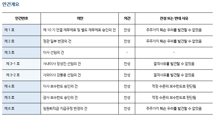 * 본 의안분석은 아주기업경영연구소의 의결권 행사 가이드라인에 따라 작성된 것이며, 세부 내용은 고객사에게만 제공됩니다.
