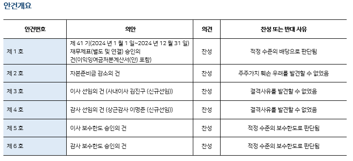 * 본 의안분석은 아주기업경영연구소의 의결권 행사 가이드라인에 따라 작성된 것이며, 세부 내용은 고객사에게만 제공됩니다.