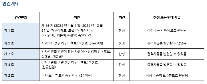 * 본 의안분석은 아주기업경영연구소의 의결권 행사 가이드라인에 따라 작성된 것이며, 세부 내용은 고객사에게만 제공됩니다.