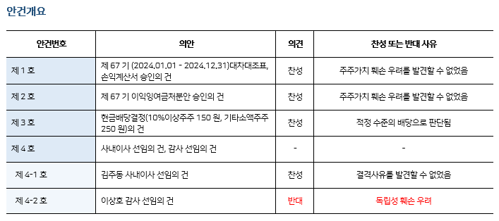 * 본 의안분석은 아주기업경영연구소의 의결권 행사 가이드라인에 따라 작성된 것이며, 세부 내용은 고객사에게만 제공됩니다.