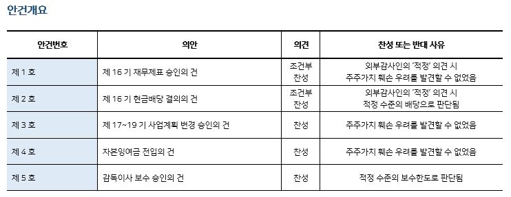 * 본 의안분석은 아주기업경영연구소의 의결권 행사 가이드라인에 따라 작성된 것이며, 세부 내용은 고객사에게만 제공됩니다.
