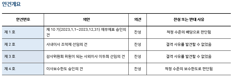 * 본 의안분석은 아주기업경영연구소의 의결권 행사 가이드라인에 따라 작성된 것이며, 세부 내용은 고객사에게만 제공됩니다.