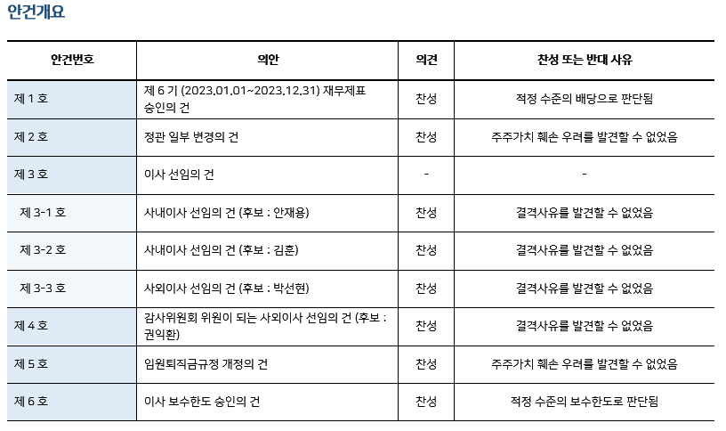 * 본 의안분석은 아주기업경영연구소의 의결권 행사 가이드라인에 따라 작성된 것이며, 세부 내용은 고객사에게만 제공됩니다.