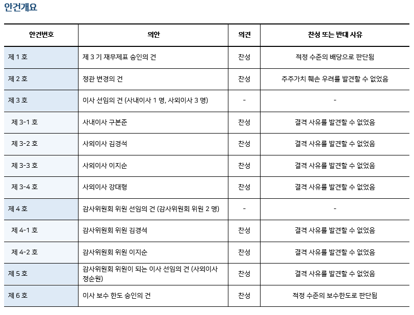 * 본 의안분석은 아주기업경영연구소의 의결권 행사 가이드라인에 따라 작성된 것이며, 세부 내용은 고객사에게만 제공됩니다.