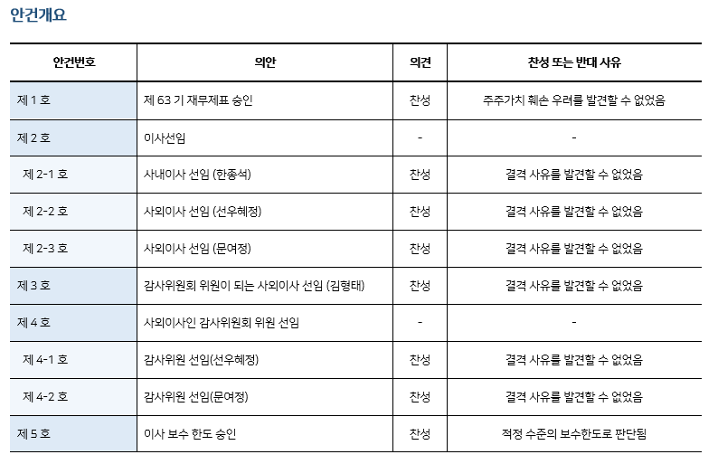 * 본 의안분석은 아주기업경영연구소의 의결권 행사 가이드라인에 따라 작성된 것이며, 세부 내용은 고객사에게만 제공됩니다.