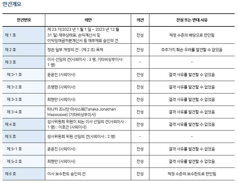 * 본 의안분석은 아주기업경영연구소의 의결권 행사 가이드라인에 따라 작성된 것이며, 세부 내용은 고객사에게만 제공됩니다.