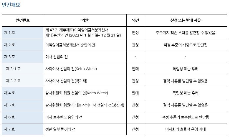 * 본 의안분석은 아주기업경영연구소의 의결권 행사 가이드라인에 따라 작성된 것이며, 세부 내용은 고객사에게만 제공됩니다.