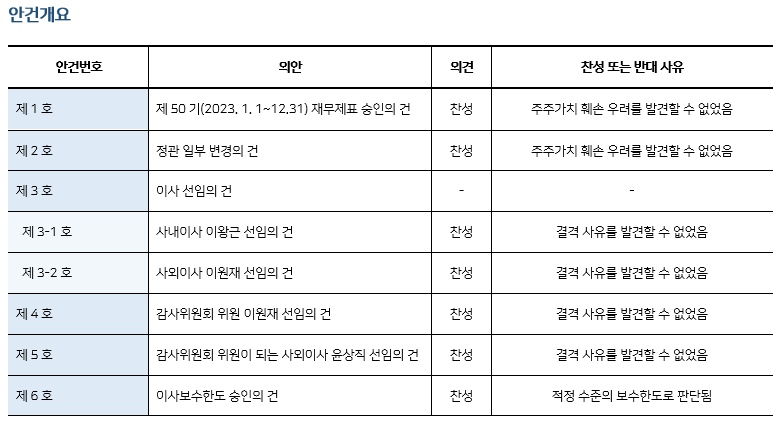* 본 의안분석은 아주기업경영연구소의 의결권 행사 가이드라인에 따라 작성된 것이며, 세부 내용은 고객사에게만 제공됩니다.