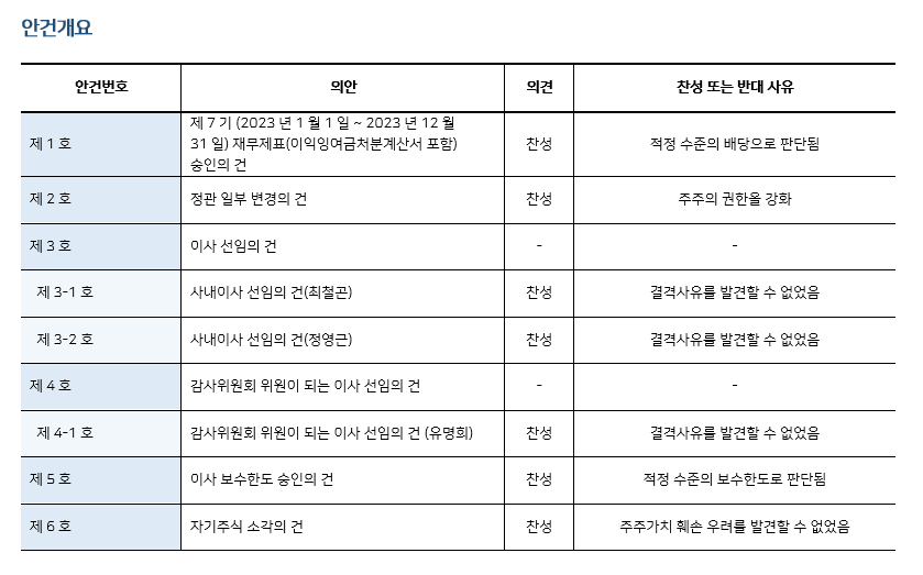* 본 의안분석은 아주기업경영연구소의 의결권 행사 가이드라인에 따라 작성된 것이며, 세부 내용은 고객사에게만 제공됩니다.