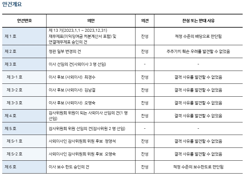 * 본 의안분석은 아주기업경영연구소의 의결권 행사 가이드라인에 따라 작성된 것이며, 세부 내용은 고객사에게만 제공됩니다.