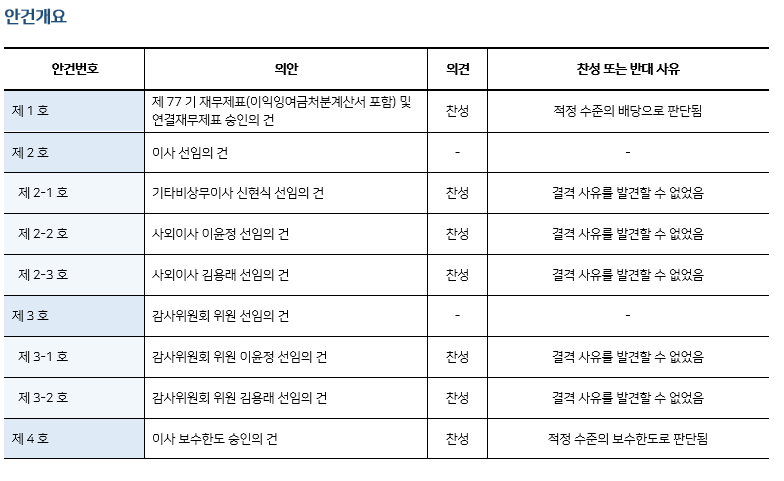 * 본 의안분석은 아주기업경영연구소의 의결권 행사 가이드라인에 따라 작성된 것이며, 세부 내용은 고객사에게만 제공됩니다.