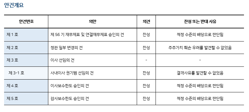 * 본 의안분석은 아주기업경영연구소의 의결권 행사 가이드라인에 따라 작성된 것이며, 세부 내용은 고객사에게만 제공됩니다.