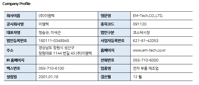 - 경남 창원시 성산구 창원대로 1144번길 40, 이엠텍 본사 3층