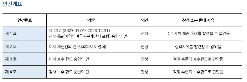 * 본 의안분석은 아주기업경영연구소의 의결권 행사 가이드라인에 따라 작성된 것이며, 세부 내용은 고객사에게만 제공됩니다.