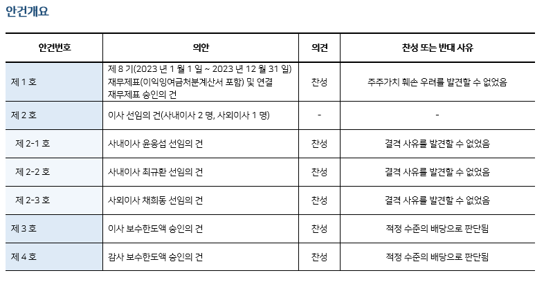 * 본 의안분석은 아주기업경영연구소의 의결권 행사 가이드라인에 따라 작성된 것이며, 세부 내용은 고객사에게만 제공됩니다.