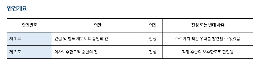 * 본 의안분석은 아주기업경영연구소의 의결권 행사 가이드라인에 따라 작성된 것이며, 세부 내용은 고객사에게만 제공됩니다.