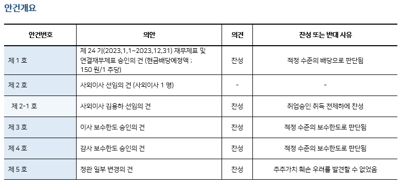 * 본 의안분석은 아주기업경영연구소의 의결권 행사 가이드라인에 따라 작성된 것이며, 세부 내용은 고객사에게만 제공됩니다.