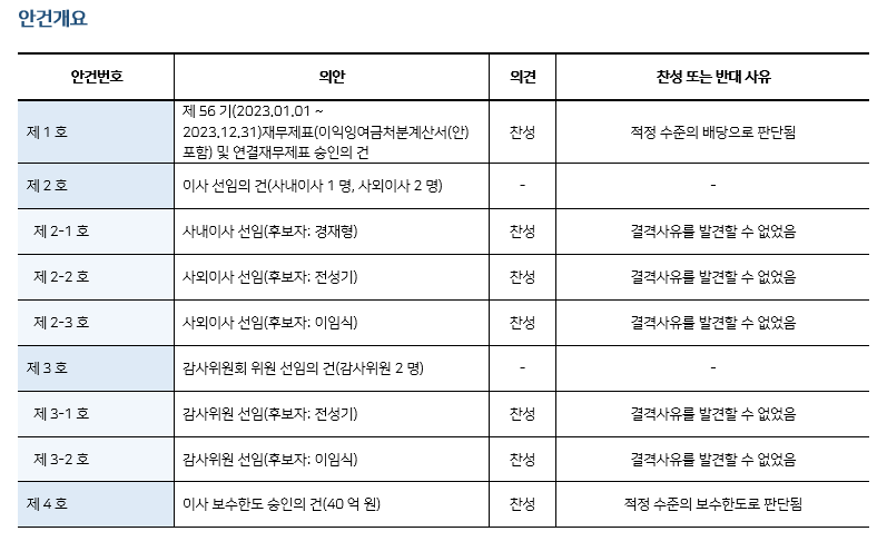 * 본 의안분석은 아주기업경영연구소의 의결권 행사 가이드라인에 따라 작성된 것이며, 세부 내용은 고객사에게만 제공됩니다.