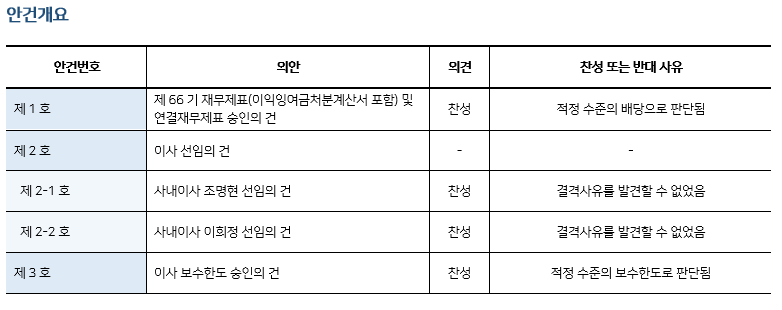 * 본 의안분석은 아주기업경영연구소의 의결권 행사 가이드라인에 따라 작성된 것이며, 세부 내용은 고객사에게만 제공됩니다.
