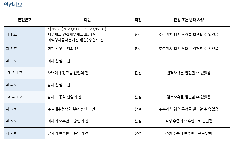 * 본 의안분석은 아주기업경영연구소의 의결권 행사 가이드라인에 따라 작성된 것이며, 세부 내용은 고객사에게만 제공됩니다.