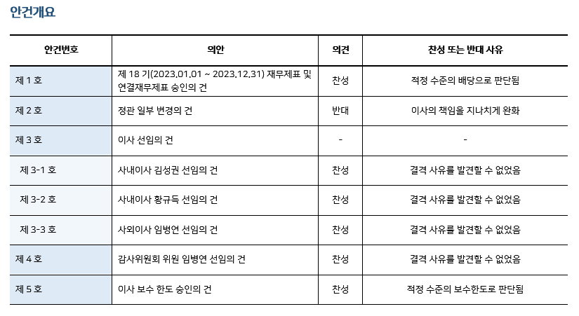 * 본 의안분석은 아주기업경영연구소의 의결권 행사 가이드라인에 따라 작성된 것이며, 세부 내용은 고객사에게만 제공됩니다.