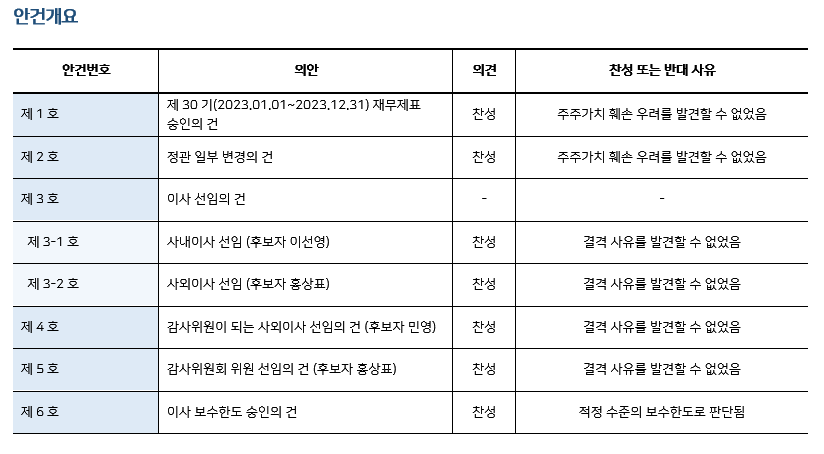 * 본 의안분석은 아주기업경영연구소의 의결권 행사 가이드라인에 따라 작성된 것이며, 세부 내용은 고객사에게만 제공됩니다.