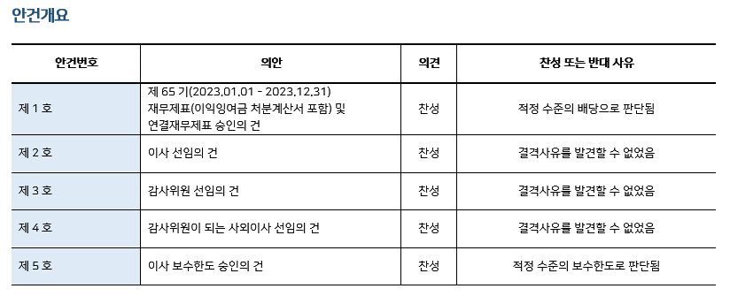 * 본 의안분석은 아주기업경영연구소의 의결권 행사 가이드라인에 따라 작성된 것이며, 세부 내용은 고객사에게만 제공됩니다.