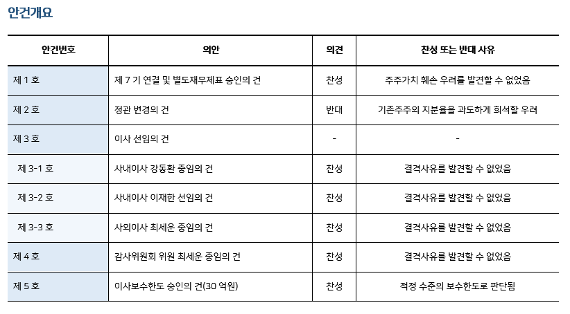 * 본 의안분석은 아주기업경영연구소의 의결권 행사 가이드라인에 따라 작성된 것이며, 세부 내용은 고객사에게만 제공됩니다.