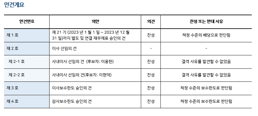 * 본 의안분석은 아주기업경영연구소의 의결권 행사 가이드라인에 따라 작성된 것이며, 세부 내용은 고객사에게만 제공됩니다.