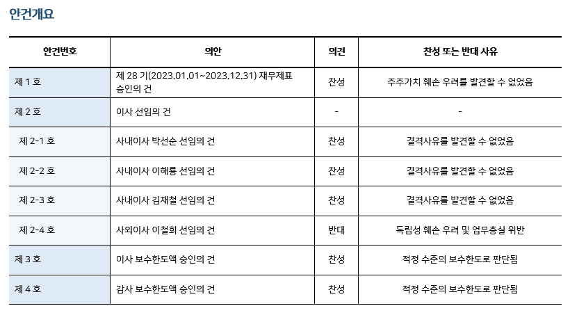 * 본 의안분석은 아주기업경영연구소의 의결권 행사 가이드라인에 따라 작성된 것이며, 세부 내용은 고객사에게만 제공됩니다.