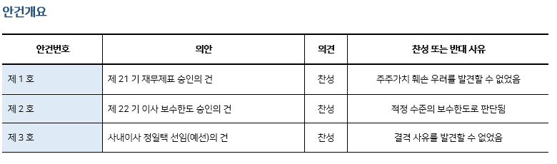 * 본 의안분석은 아주기업경영연구소의 의결권 행사 가이드라인에 따라 작성된 것이며, 세부 내용은 고객사에게만 제공됩니다.