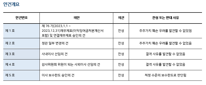 * 본 의안분석은 아주기업경영연구소의 의결권 행사 가이드라인에 따라 작성된 것이며, 세부 내용은 고객사에게만 제공됩니다.