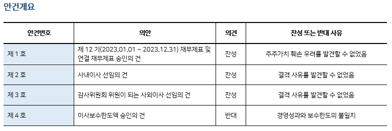 * 본 의안분석은 아주기업경영연구소의 의결권 행사 가이드라인에 따라 작성된 것이며, 세부 내용은 고객사에게만 제공됩니다.