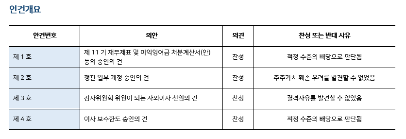 * 본 의안분석은 아주기업경영연구소의 의결권 행사 가이드라인에 따라 작성된 것이며, 세부 내용은 고객사에게만 제공됩니다.
