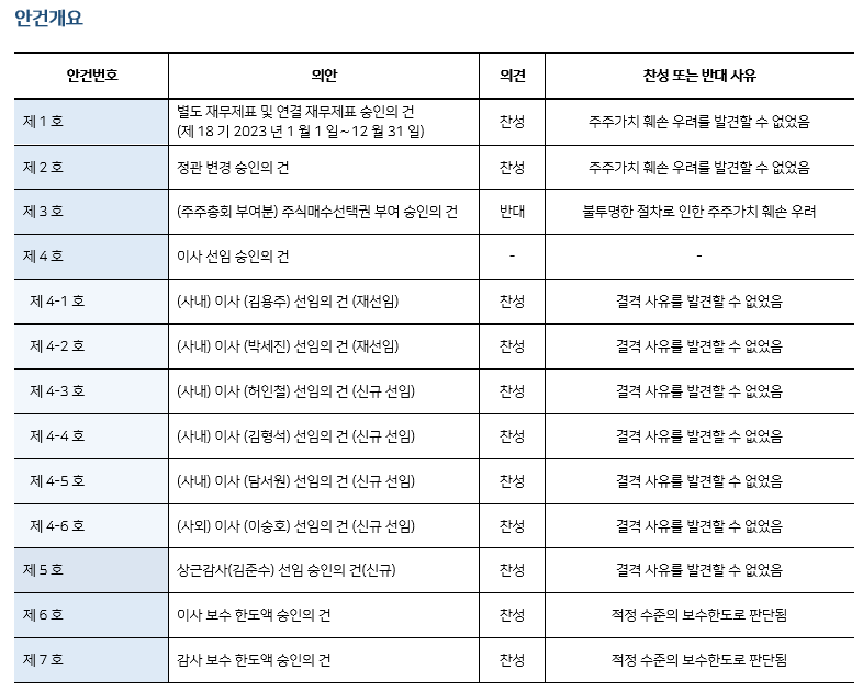 * 본 의안분석은 아주기업경영연구소의 의결권 행사 가이드라인에 따라 작성된 것이며, 세부 내용은 고객사에게만 제공됩니다.