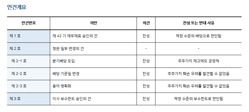 * 본 의안분석은 아주기업경영연구소의 의결권 행사 가이드라인에 따라 작성된 것이며, 세부 내용은 고객사에게만 제공됩니다.