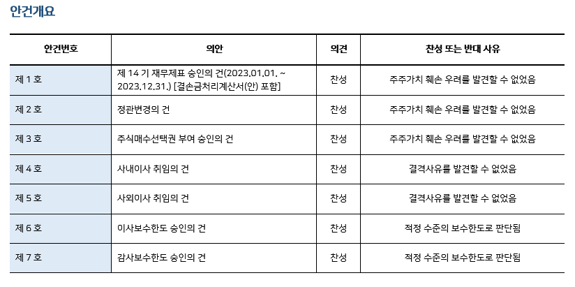 * 본 의안분석은 아주기업경영연구소의 의결권 행사 가이드라인에 따라 작성된 것이며, 세부 내용은 고객사에게만 제공됩니다.