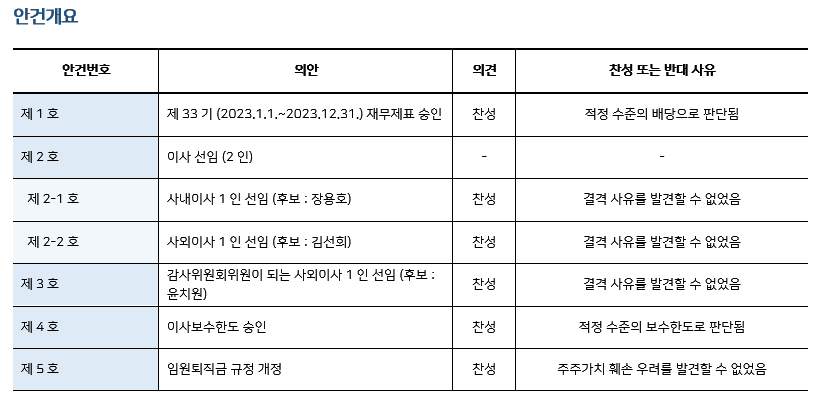 * 본 의안분석은 아주기업경영연구소의 의결권 행사 가이드라인에 따라 작성된 것이며, 세부 내용은 고객사에게만 제공됩니다.