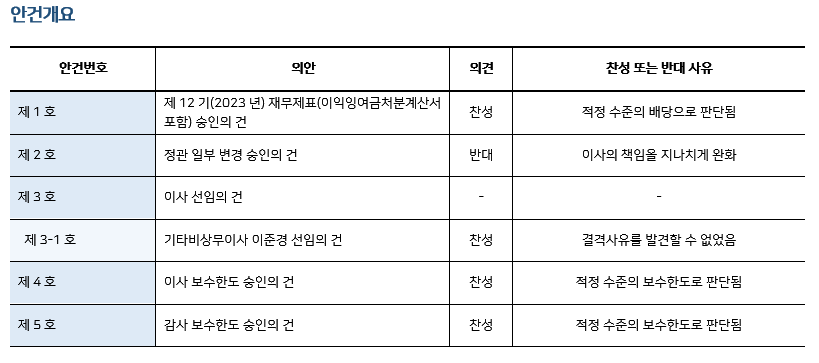 * 본 의안분석은 아주기업경영연구소의 의결권 행사 가이드라인에 따라 작성된 것이며, 세부 내용은 고객사에게만 제공됩니다.