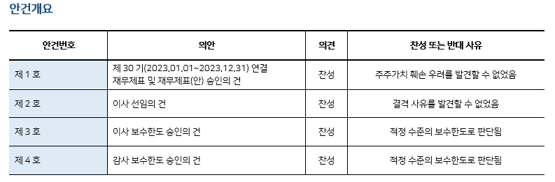 * 본 의안분석은 아주기업경영연구소의 의결권 행사 가이드라인에 따라 작성된 것이며, 세부 내용은 고객사에게만 제공됩니다.