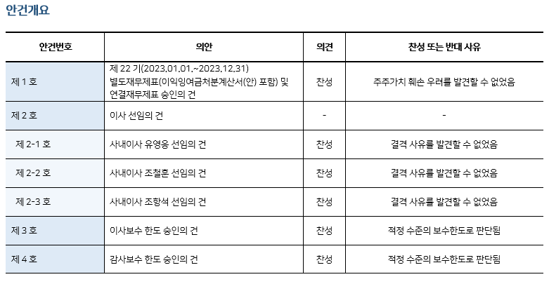 * 본 의안분석은 아주기업경영연구소의 의결권 행사 가이드라인에 따라 작성된 것이며, 세부 내용은 고객사에게만 제공됩니다.