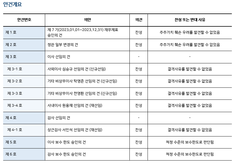 * 본 의안분석은 아주기업경영연구소의 의결권 행사 가이드라인에 따라 작성된 것이며, 세부 내용은 고객사에게만 제공됩니다.