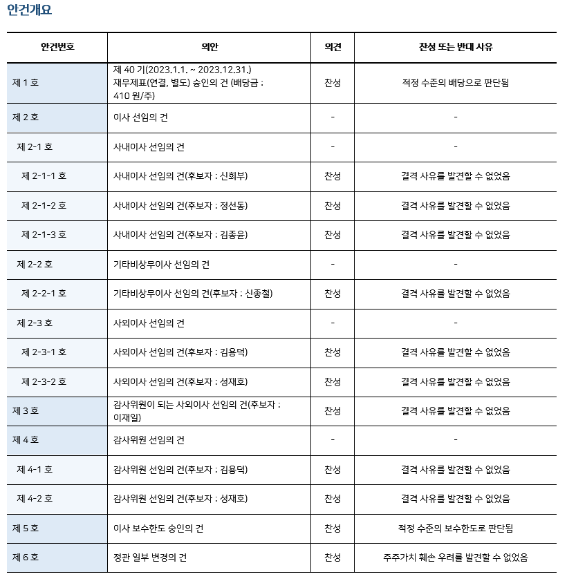 * 본 의안분석은 아주기업경영연구소의 의결권 행사 가이드라인에 따라 작성된 것이며, 세부 내용은 고객사에게만 제공됩니다.