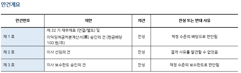 * 본 의안분석은 아주기업경영연구소의 의결권 행사 가이드라인에 따라 작성된 것이며, 세부 내용은 고객사에게만 제공됩니다.