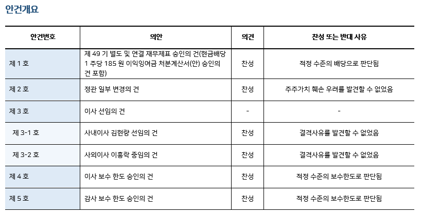 * 본 의안분석은 아주기업경영연구소의 의결권 행사 가이드라인에 따라 작성된 것이며, 세부 내용은 고객사에게만 제공됩니다.