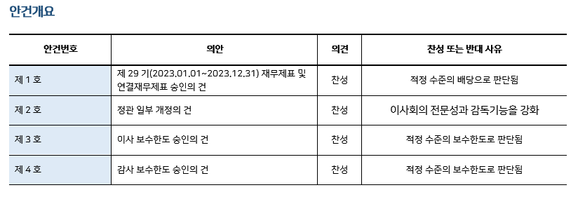 * 본 의안분석은 아주기업경영연구소의 의결권 행사 가이드라인에 따라 작성된 것이며, 세부 내용은 고객사에게만 제공됩니다.
