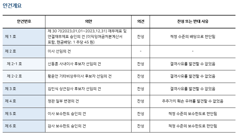 * 본 의안분석은 아주기업경영연구소의 의결권 행사 가이드라인에 따라 작성된 것이며, 세부 내용은 고객사에게만 제공됩니다.