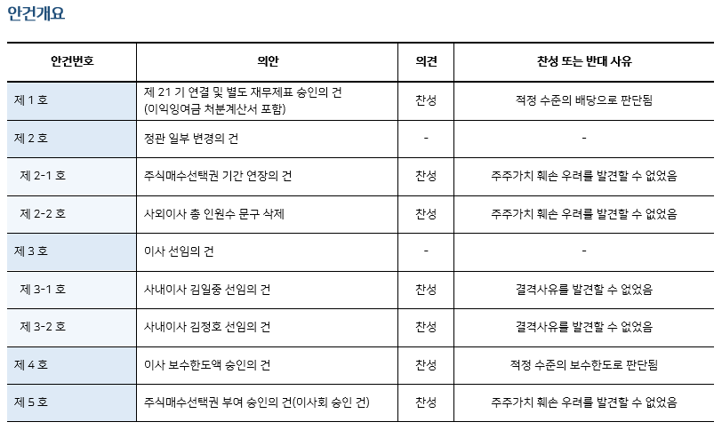 * 본 의안분석은 아주기업경영연구소의 의결권 행사 가이드라인에 따라 작성된 것이며, 세부 내용은 고객사에게만 제공됩니다.