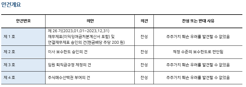 * 본 의안분석은 아주기업경영연구소의 의결권 행사 가이드라인에 따라 작성된 것이며, 세부 내용은 고객사에게만 제공됩니다.